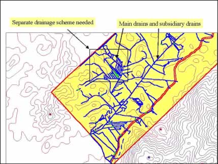 Figure 14: Redesigning road system in an oil palm plantation using DEM for efficient transport of FFB, workers etc