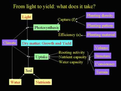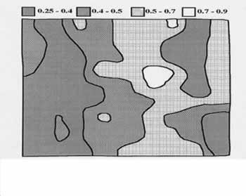 Emmott et al . (1997) stated that “If replanting is a key issue in plantation crops, then identifying where yield improvements can be achieved in order to realise a satisfactory return on investment might be appropriate area for precision farming”. This is probably true in Peninsular Malaysia where the oil palm is getting older and probably past its prime productivity due to management difficulty in maintaining sufficient leaf area index (Goh and Chew, 2000), harvesting standards and collection of loose fruits. The potential yield loss could be examined by comparing the actual yield obtained from the field against its site yield potential, which can be estimated using ASYP model as discussed earlier. The yield gaps may then be classified and displayed on GPS maps to form a basis for strategic decision (trade-off) on replanting program of the company rather than to use an arbitrary yield level such as below 18 t/ha/yr which varies with the palm oil price or at palm age of say 25 years old (Goh et al ., 2000).